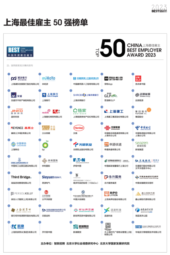必赢科技荣膺“智联2023上海最佳雇主50强”